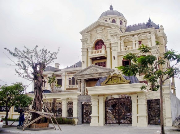 Một công trình tiêu biểu nữa cũng đến từ Hải Phòng. Có lẽ vì thành phố hoa phượng có khá nhiều "đại gia" với thú "chơi" biệt thự châu Âu. Phong cách cổ điển một lần nữa lại xuất hiện trên kiến trúc này. Tông màu trắng ngà chủ đạo với màu xám tối tương phản của cổng và rào nhôm đúc giúp tô điểm nên vẻ sang trọng đặc biệt của ngôi nhà.