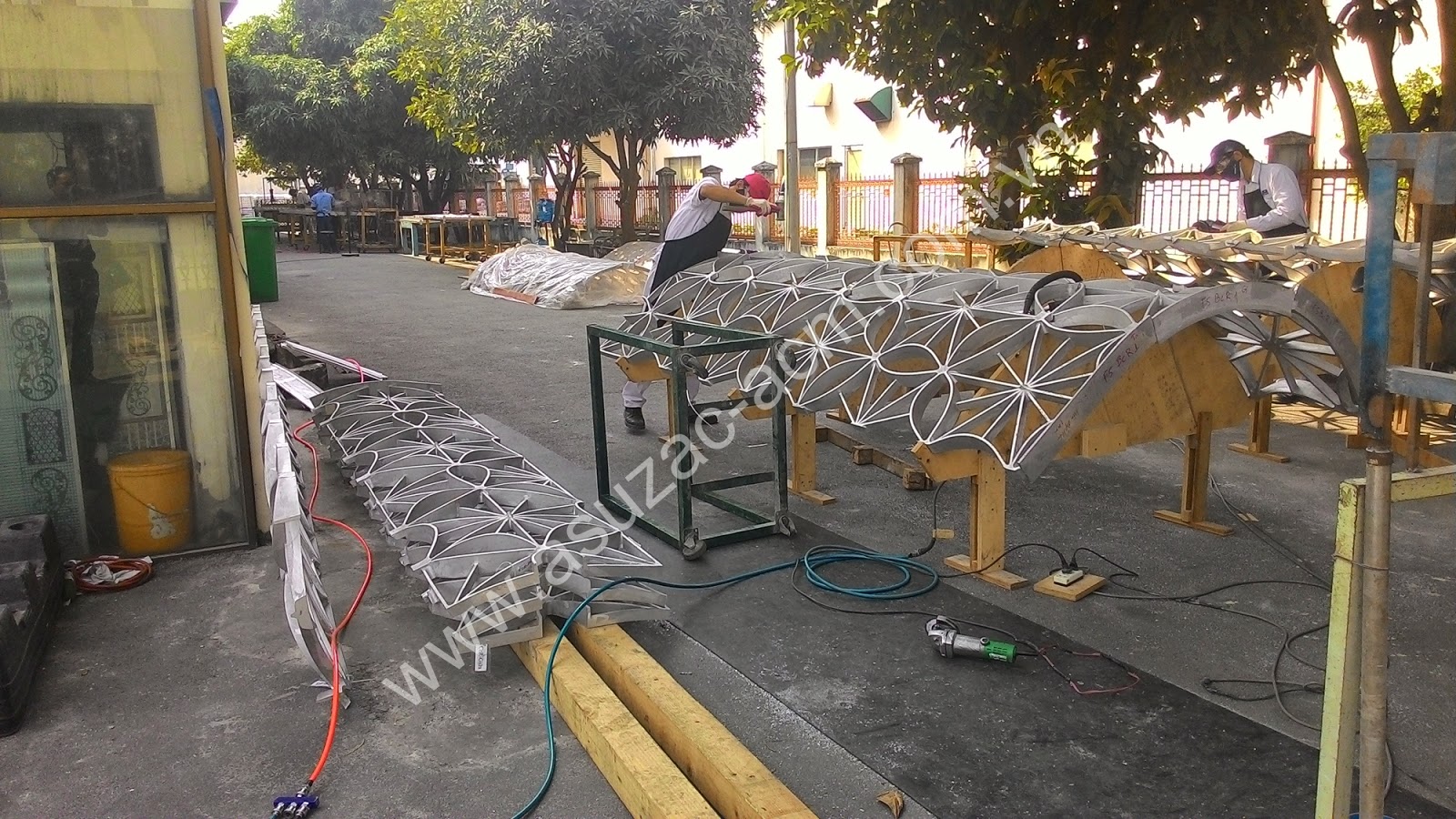 Vẫn là dạng kiến trúc lớn cho toà nhà cao tầng, các tấm nhôm được thiết kế và tính toán sao cho các hoa văn vừa vặn khi láp ráp hoàn thiện.